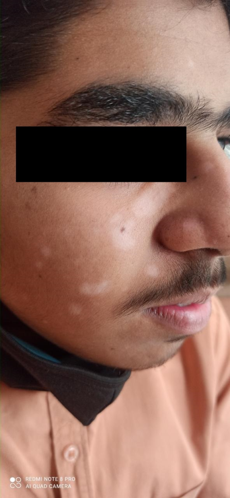 - Leucoderma/Vitiligo: White, non-scaly patches without inflammation.
